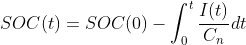 ( SOC(t) = 시간 t에서 SOC, SOC(0) = 초기 SOC, C = 배터리의 정격 용량 )