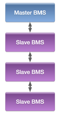 BMS는 Master와 Slave로 구성됩니다. 그리고 각각의 셀 단위에서 팩으로 그리고 중앙 제어 장치까지 연결되어 명령을 내리고 명령을 받기 위해서는 BMS는 다음과 같은 아키텍처로 구성됩니다.