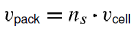 직렬로 연결할 때 기본 공식은 다음과 같습니다. 각 셀이 가진 전압이 일정하다고 가정할 때 전압에 셀 개수를 곱하게 되면 팩의 전압이 되겠습니다.