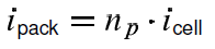 병렬 연결로 진행을 한다면 고등학교와 중학교에서 배웠듯이 전압의 변화는 없으나 전류는 cell의 개수에 따라서 증가하게 되어서 하단의 식과 같이 표현됩니다.