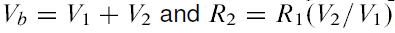 우선 Vb는 배터리 전압이며 V1와 V2는 R0를 넣기 전의 각각의 저항에 걸리는 전압입니다. 때문에 하단의 식처럼 표현이 될 수 있으며