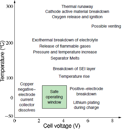 그러나 만약 안전 온도 범위를 넘어가는 상황이 외부환경이나 내부적 손상으로 인해 발생한다면 최종 단계인 (최상층) Thermal Runaway 즉 열 폭주 현상까지 이르게 되어 폭발에 이릅니다. 때문에 Air cooling 시스템은 반드시 필요로 하며 냉매를 이용하거나 또는 열 전도율이 높은 장비들을 사용하여 온도 관리를 해줘야 합니다. 마찬가지로 낮은 온도에서는 전해질이 응고하면서 반응이 느려지게 되는 상황이 발생하기 때문에 heating 또한 반드시 필요한 시스템입니다.