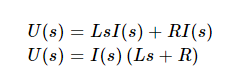 변환된 식은 아래와 같으며 전달함수 (U(s))는 출력 (I(s)) 나누기 입력 (U(s))로 표현할 수 있습니다.