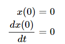 추가적으로 시스템의 초기 조건 (initial condition)을 적용해줍니다. 시스템의 초기 위치와 속도에 대해 적용하여서 식을 간단하게 만듭니다.