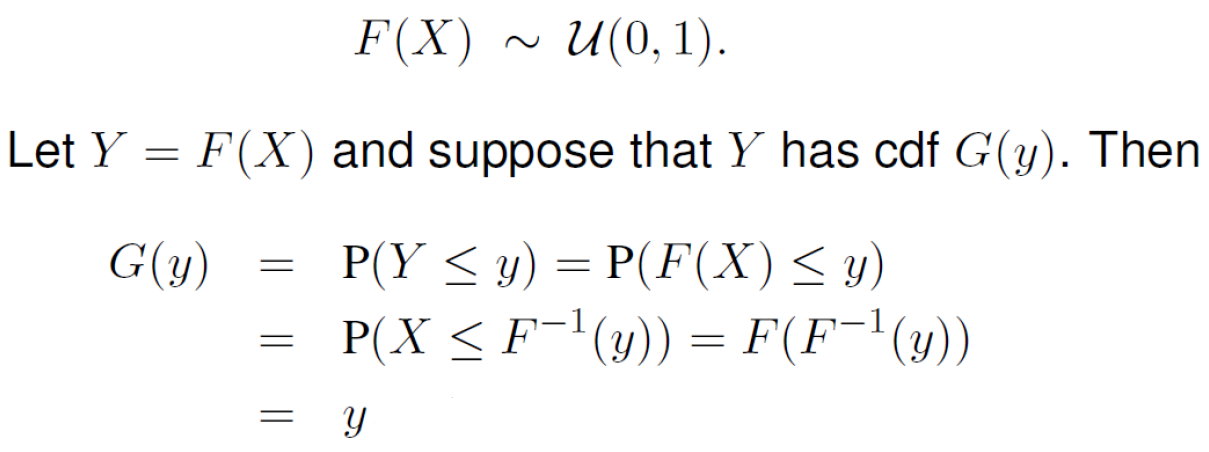 *또한 CDF를 사용하는 이유는 단조 증가 함수 (감소하지 않고 줄곧 왼쪽으로 오른쪽으로 상승)이기에 한 개의 y값에 한 개의 x값이 대응되는 1:1 대응이기 때문입니다. 또한 PDF를 적분하면 CDF가 되며 적분 과정을 통해서 PDF보다 식 계산이 더 간편해지기 때문입니다.